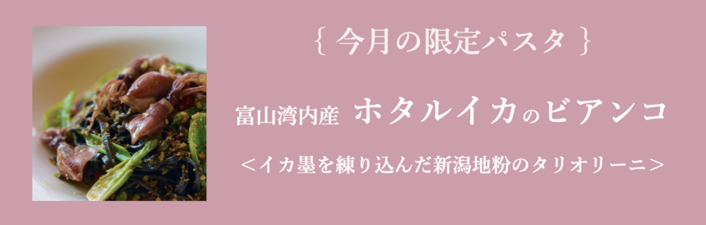 4月限定パスタは… 富山湾内産ホタルイカのビアンコ〈イカ墨を…